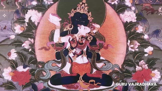 The guru Padmasambhava’s aspect as Vajradhara was the transcending of the fear of birth, death, illness, and any kind of pain to the fearlessness principle. He roamed through the charnel ground of Silwa Tsal and ate flesh of a deceased body, and wore the clothes of the deceased body. He had no fear or regret, although he had recently been the prince of the Oddiyana kingdom. He regarded the charnel ground as another palace despite all its terrible sights. He explored that everything in life was impermanent, a constant changing process of death and birth taking place all the time. By experiencing and exploring the evidence that he had encountered, he meditated in the nearby cave without being threatened by anything at all. He attained Vidyadhara eternity at Silwa Tsal.